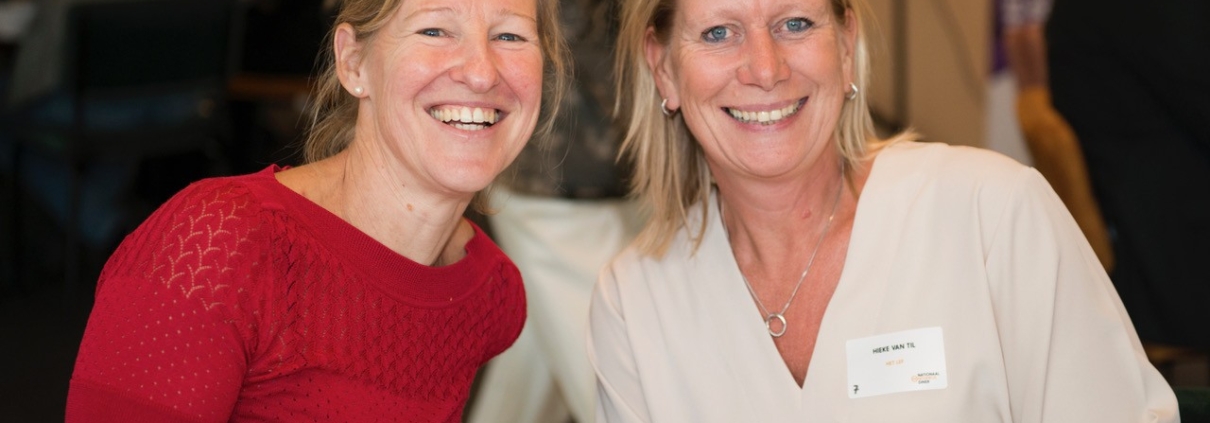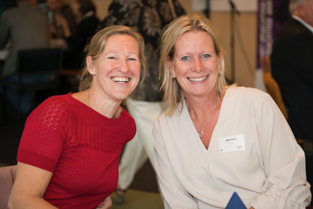 Op de foto onze programmaleider Onderwijsstad Hieke Colen- van Til en proceshouder Het LEF (Leiden Education Fieldlab) Sanne van der Linden tijdens het nationale onderwijsdiner deze week (https://lnkd.in/eb2x-aSc)