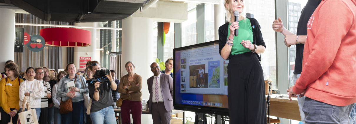 Een bijzonder moment tijdens de opening was de Duurzaamheidsquiz, gepresenteerd door Noud (groep 8) en Jenarsan (brugklas) van de Klimaatklas. Slechts drie deelnemers wisten alle vragen goed te beantwoorden – allemaal leerlingen! Hun enthousiasme zette direct de toon voor de rest van de dag.