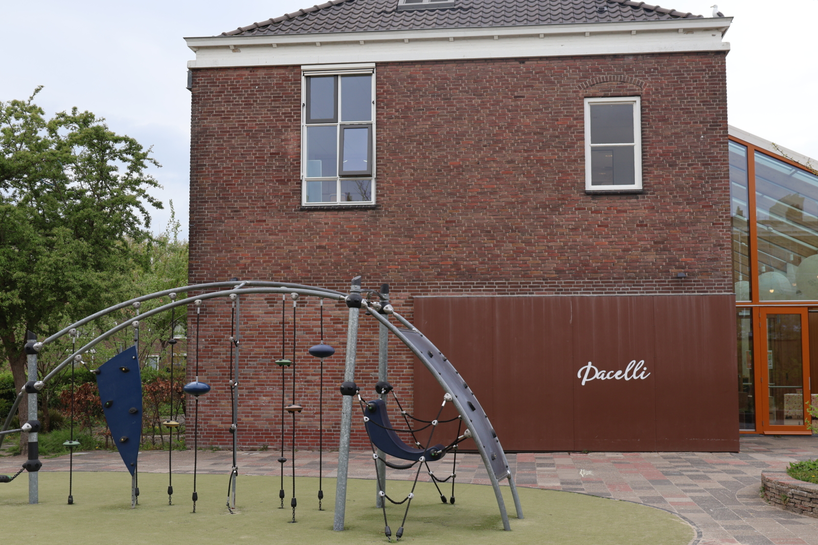 De ingang van Basisschool Pacelli en de speeltuin.