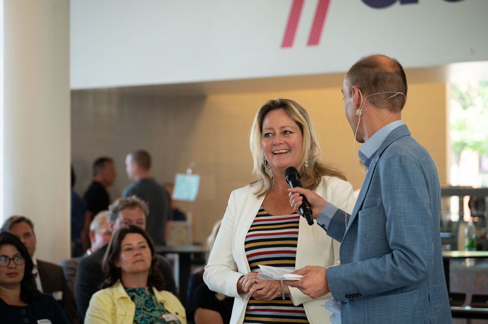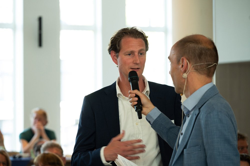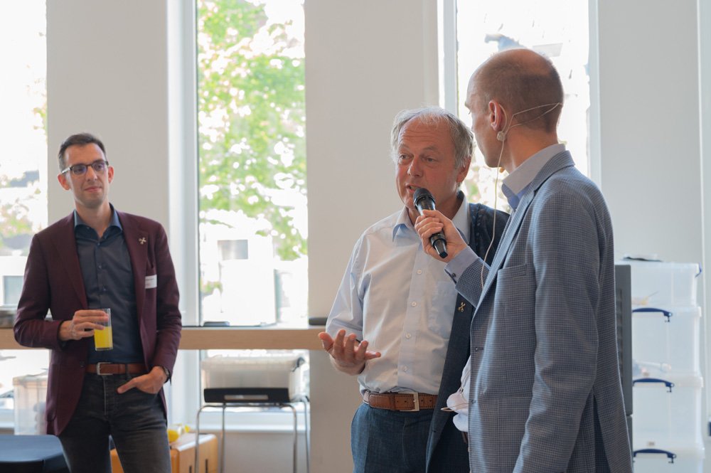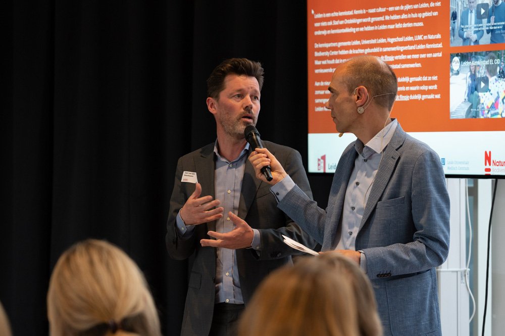 “In het Leiden Education Fieldlab gaan we een nieuwe stap maken in het verbinden van onderwijs en onderzoek. Maar ik pak hier het podium voor het wetenschapscafé, waar we onderzoekers en docenten in het onderwijs veel meer bij elkaar willen brengen. Dat kan op onze nieuwe plek: Stationsplein 107 op de begane grond. Er zijn zitjes, er is koffie. Eigenlijk hebben we daar elke dag een symposium als dit. Wees welkom.”