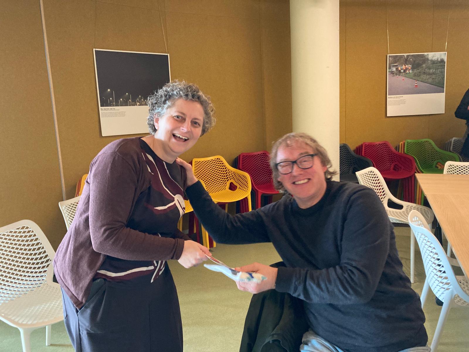 Deze keer gaan het etuitje naar… Arjen van Genderen, directeur PI de Brug en Orion bij PROO. Judith van der Togt, beleidsadviseur Onderwijs, kwaliteit, leren & ontwikkelen bij PROO reikt het etuitje aan hem uit tijdens een directeuren ontmoeting in het LEF: ‘Hij weet bruggen te slaan tussen regulier en speciaal onderwijs binnen PROO, speciaal onderwijs in de regio en daarbuiten’.